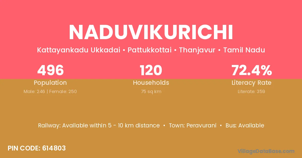 Peravurani is the nearest town to Naduvikurichi village for major economic activities