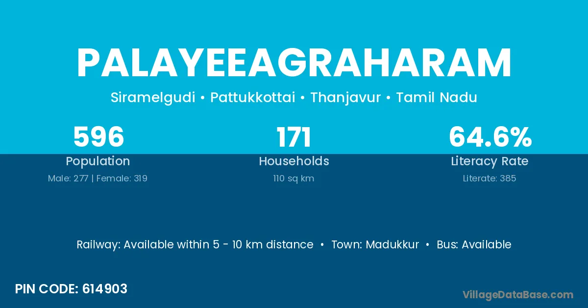 Madukkur is the nearest town to Palayeeagraharam village for major economic activities