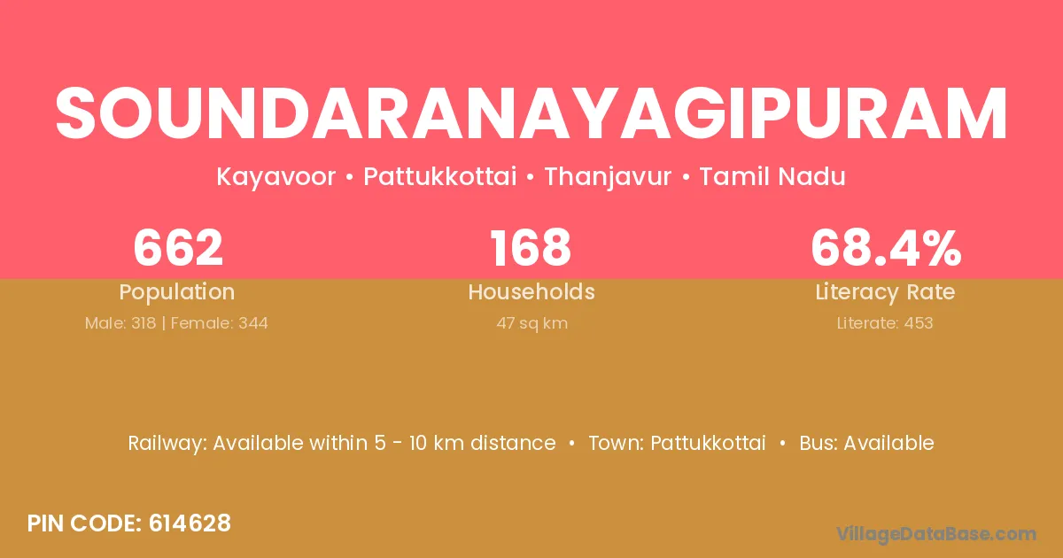 Pattukkottai is the nearest town to Soundaranayagipuram village for major economic activities