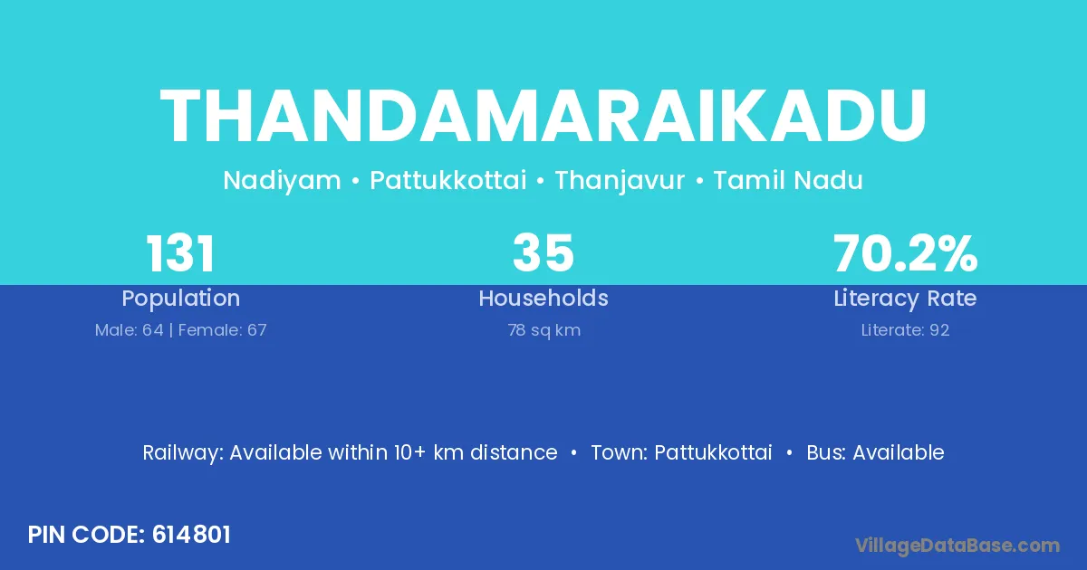 Thandamaraikadu village has a total population of 131 people, of which 64 are males and 67 are females.