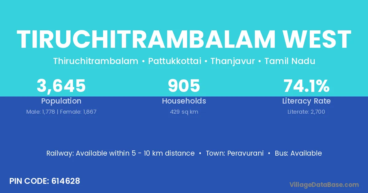 Peravurani is the nearest town to Tiruchitrambalam West village for major economic activities