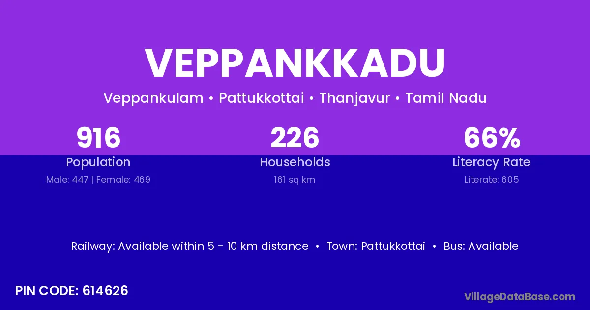 Veppankkadu village has a total population of 916 people, of which 447 are males and 469 are females.