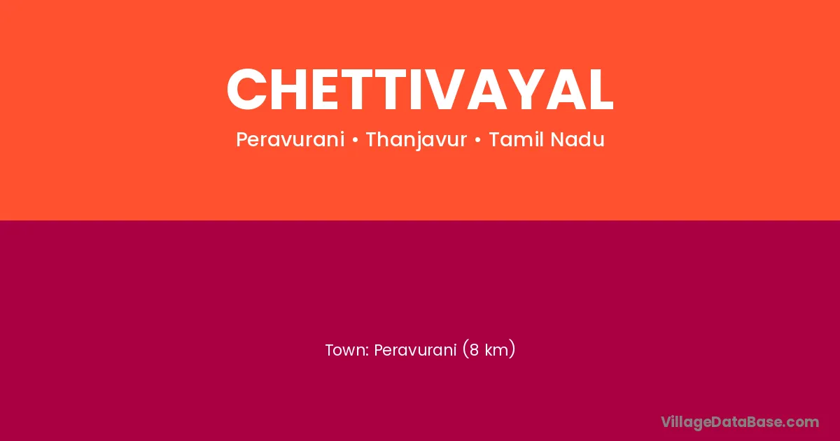 Peravurani (8 km) is the nearest town to Chettivayal village for major economic activities and is located approximately 8 km away.