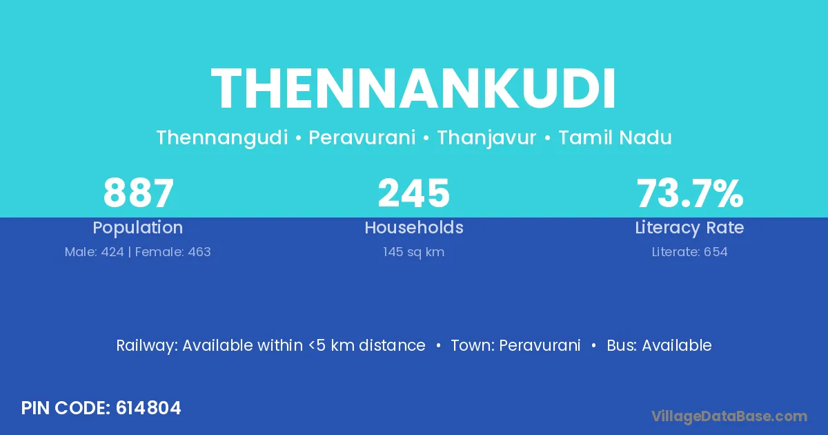 Thennankudi village has a total population of 887 people, of which 424 are males and 463 are females.