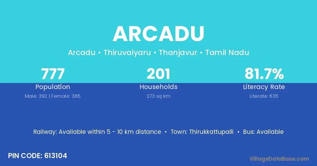 Thirukkattupalli is the nearest town to Arcadu village for major economic activities