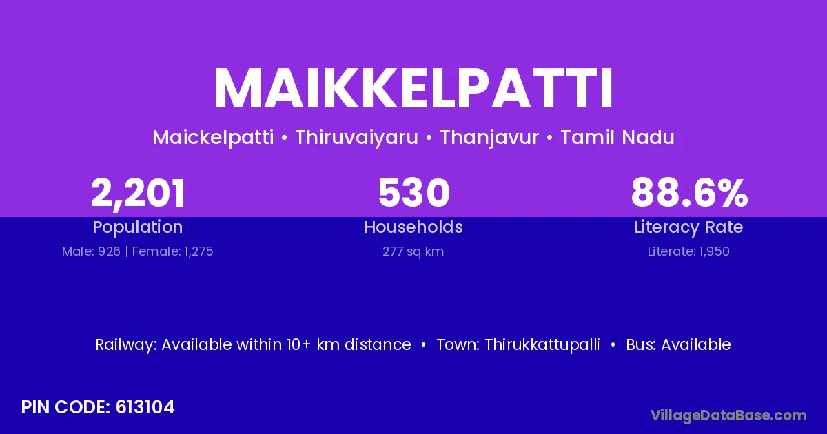 Thirukkattupalli is the nearest town to Maikkelpatti village for major economic activities