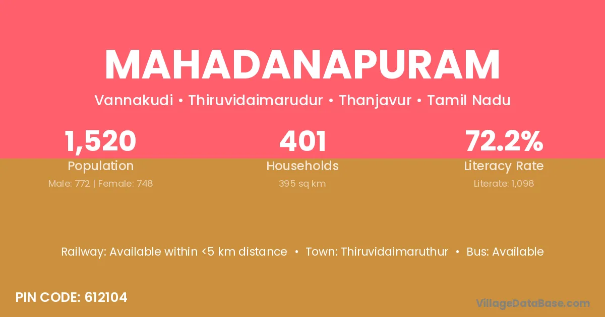Mahadanapuram village has a total population of 1,520 people, of which 772 are males and 748 are females.