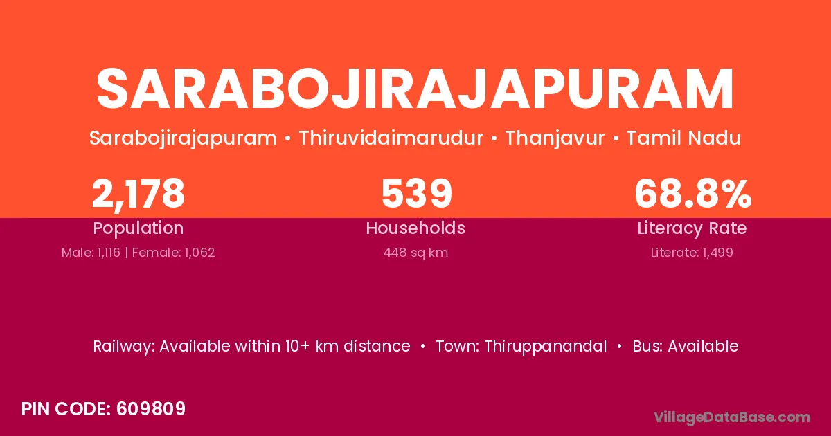 Thiruppanandal is the nearest town to Sarabojirajapuram village for major economic activities