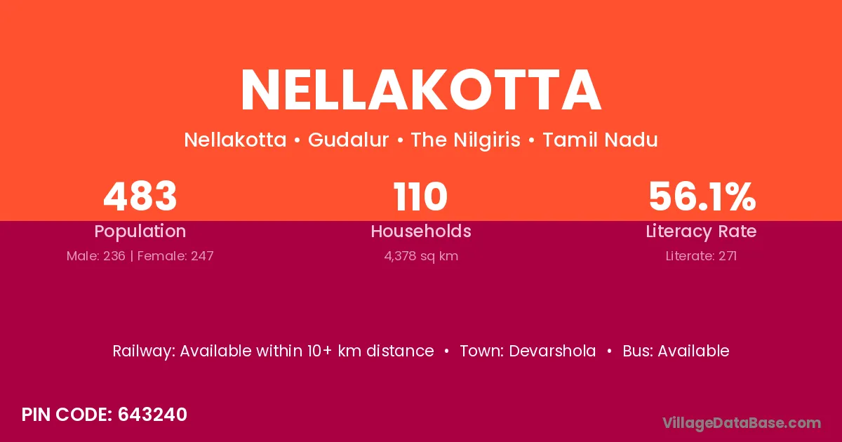 According to Census 2011 information, the village code of Nellakotta village is 643240.