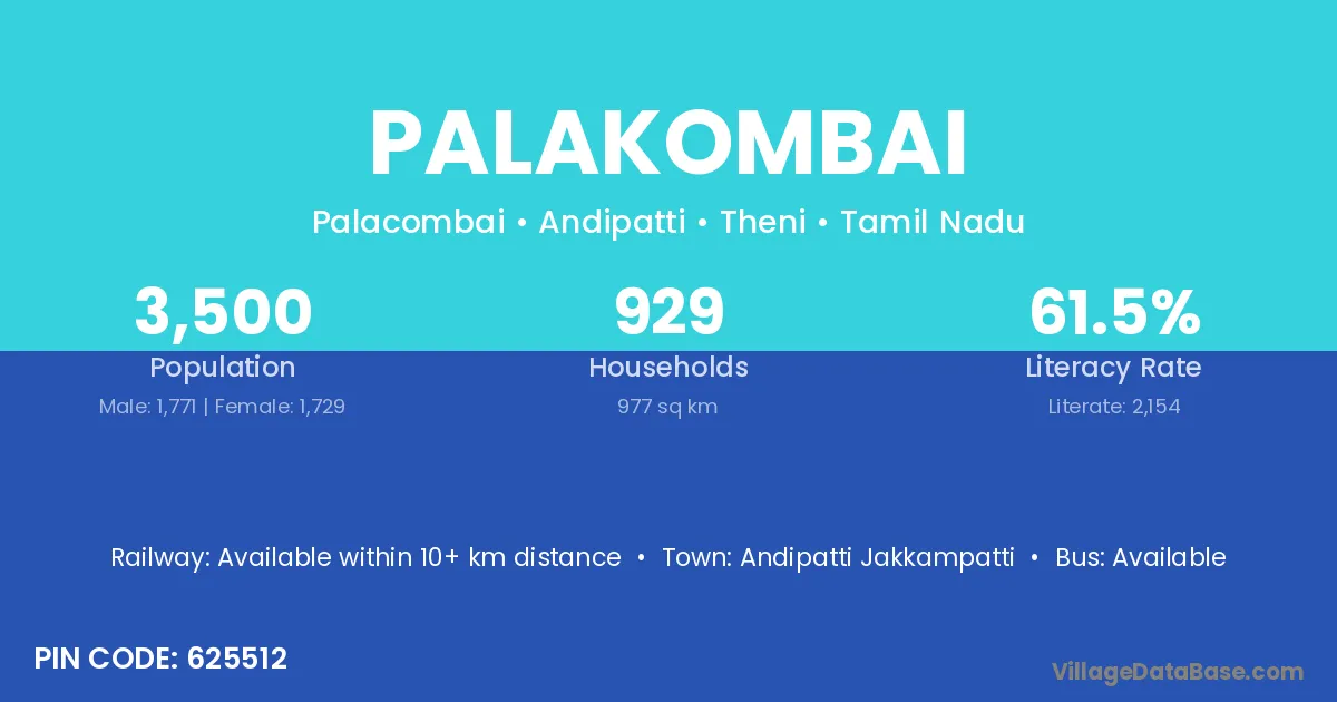 Andipatti Jakkampatti is the nearest town to Palakombai village for major economic activities