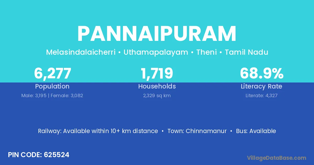 Chinnamanur is the nearest town to Pannaipuram village for major economic activities