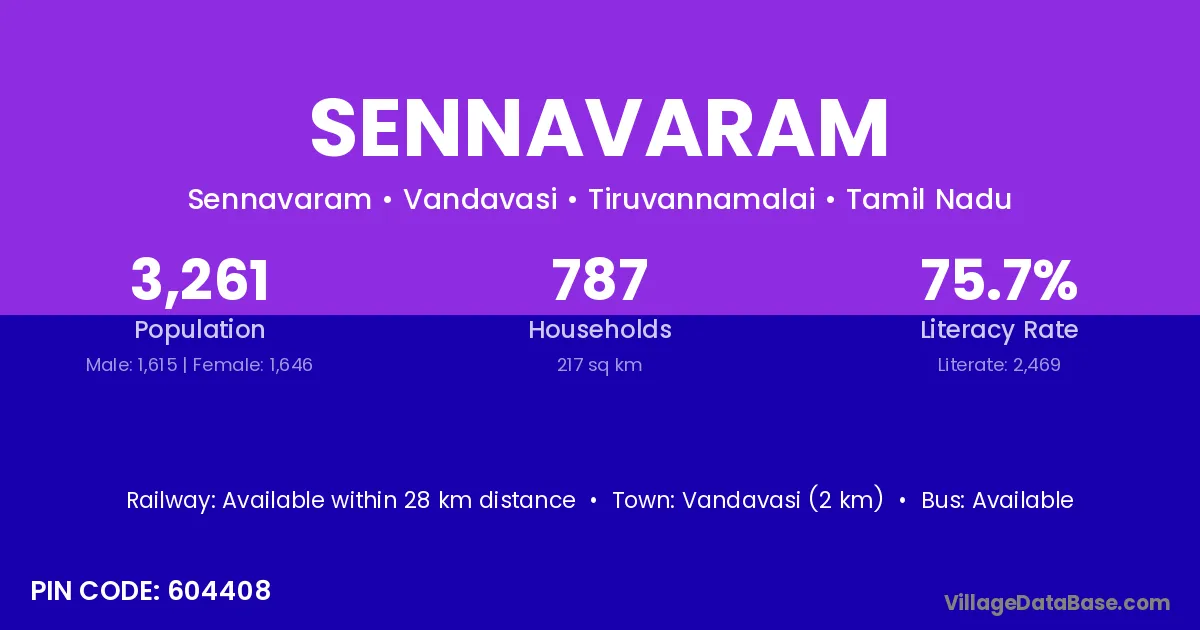 Gummidipoondi (10 km) is the nearest town to Sennavaram village for major economic activities and is located approximately 10 km away.