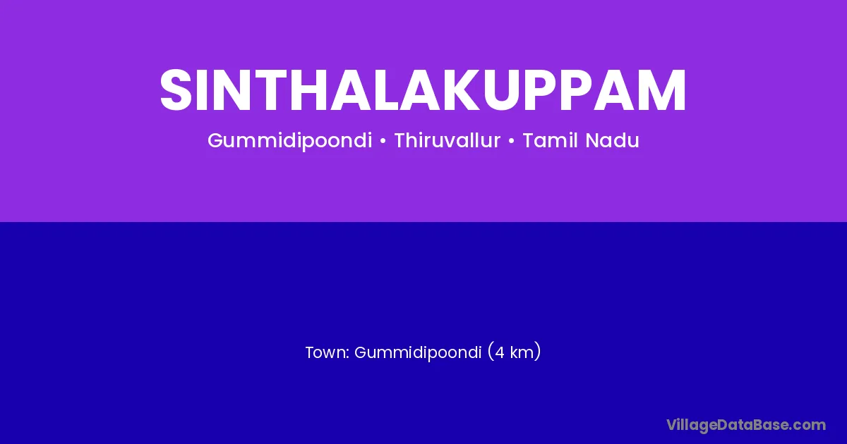 Gummidipoondi (4 km) is the nearest town to Sinthalakuppam village for major economic activities and is located approximately 4 km away.