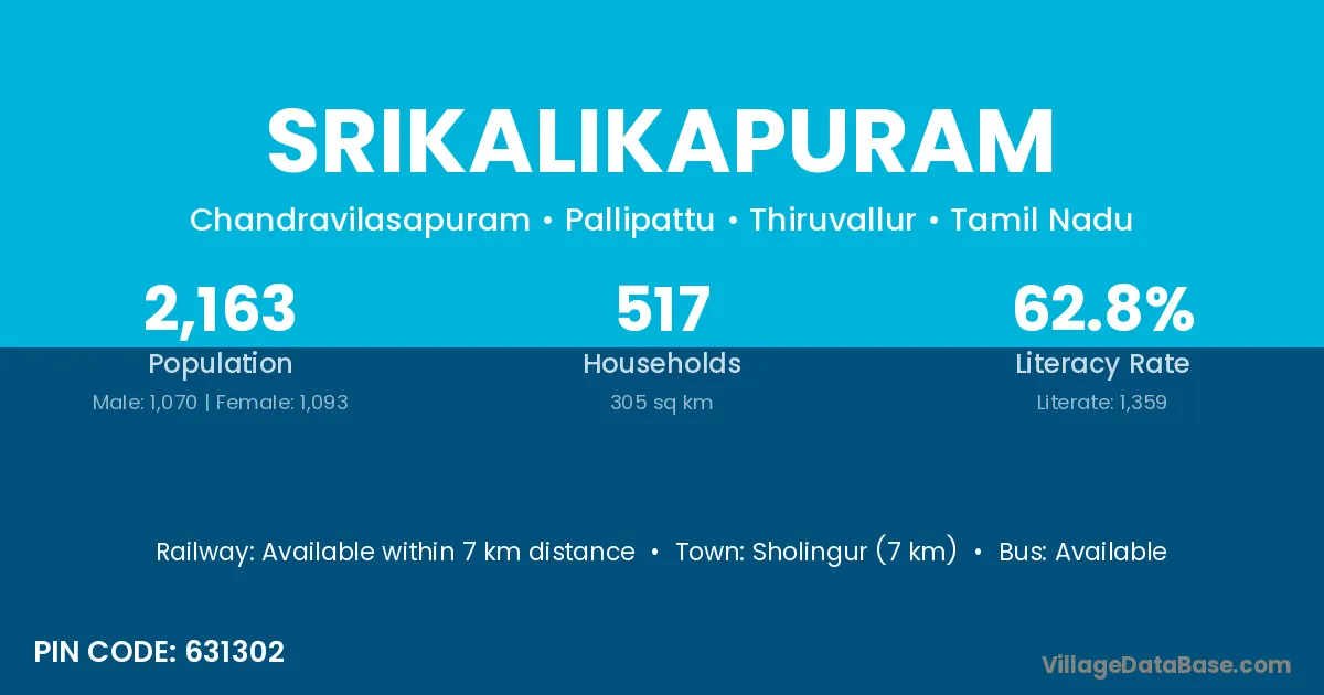 According to Census 2011 information, the village code of Srikalikapuram village is 631302.