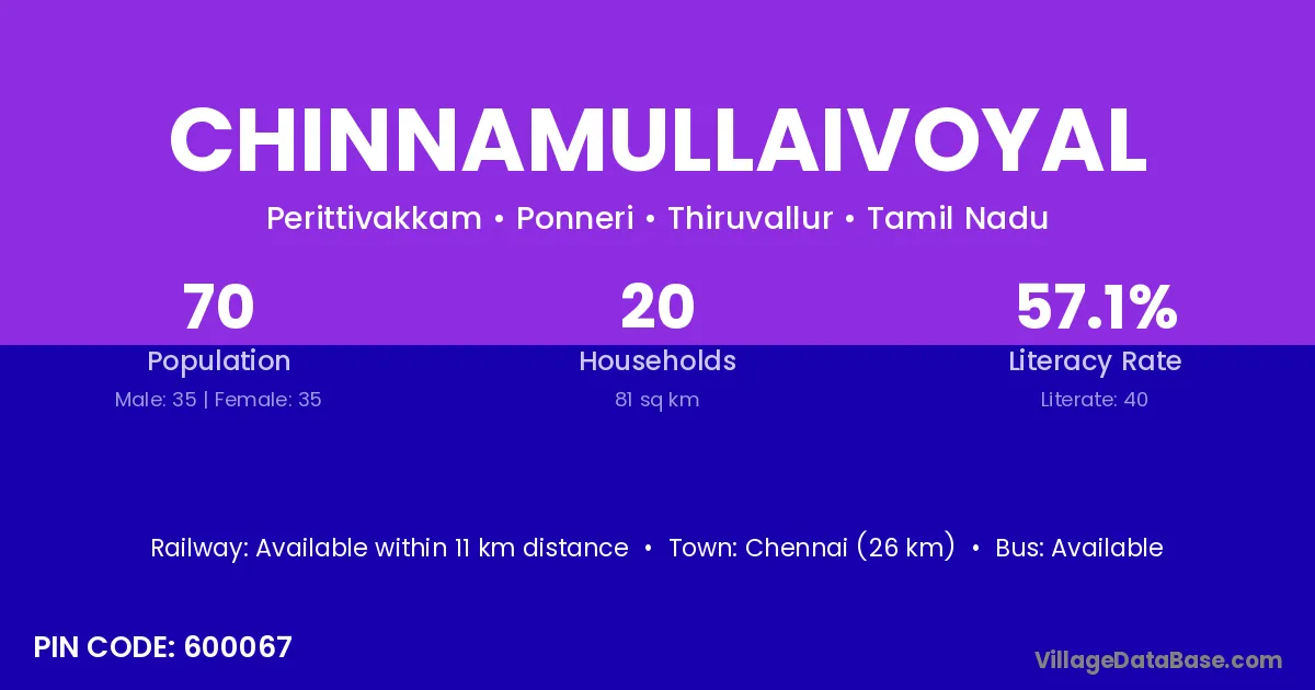According to Census 2011 information, the village code of Chinnamullaivoyal village is 600067.