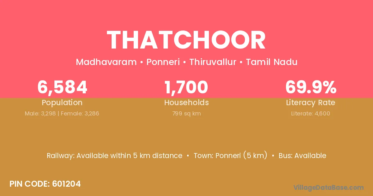 Ponneri (5 km) is the nearest town to Thatchoor village for major economic activities and is located approximately 5 km away.
