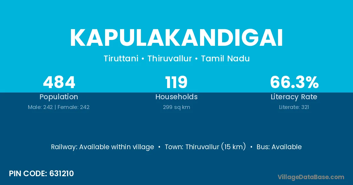 Kapulakandigai village has a total population of 484 people, of which 242 are males and 242 are females.