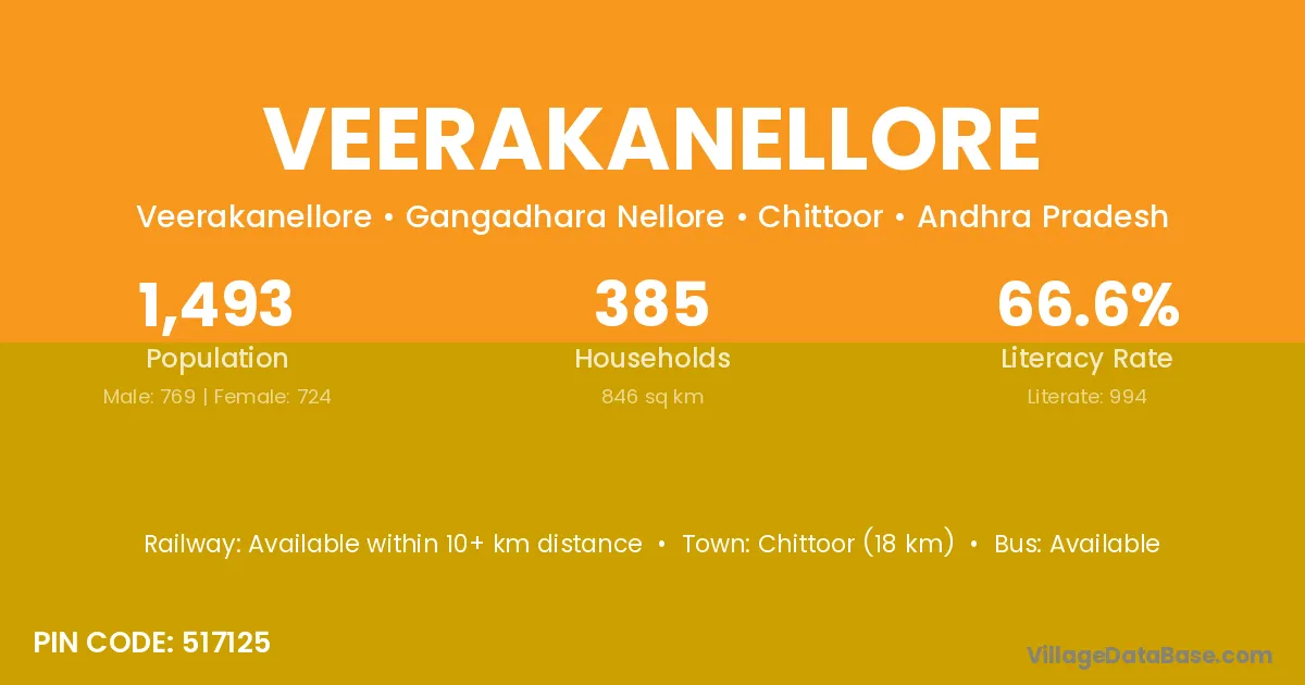 Tiruttani (7 km) is the nearest town to Veerakanellore village for major economic activities and is located approximately 7 km away.