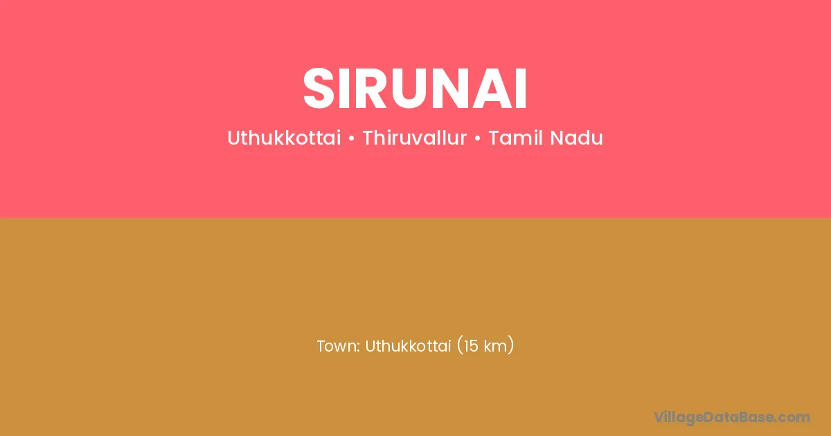 Uthukkottai (15 km) is the nearest town to Sirunai village for major economic activities and is located approximately 15 km away.