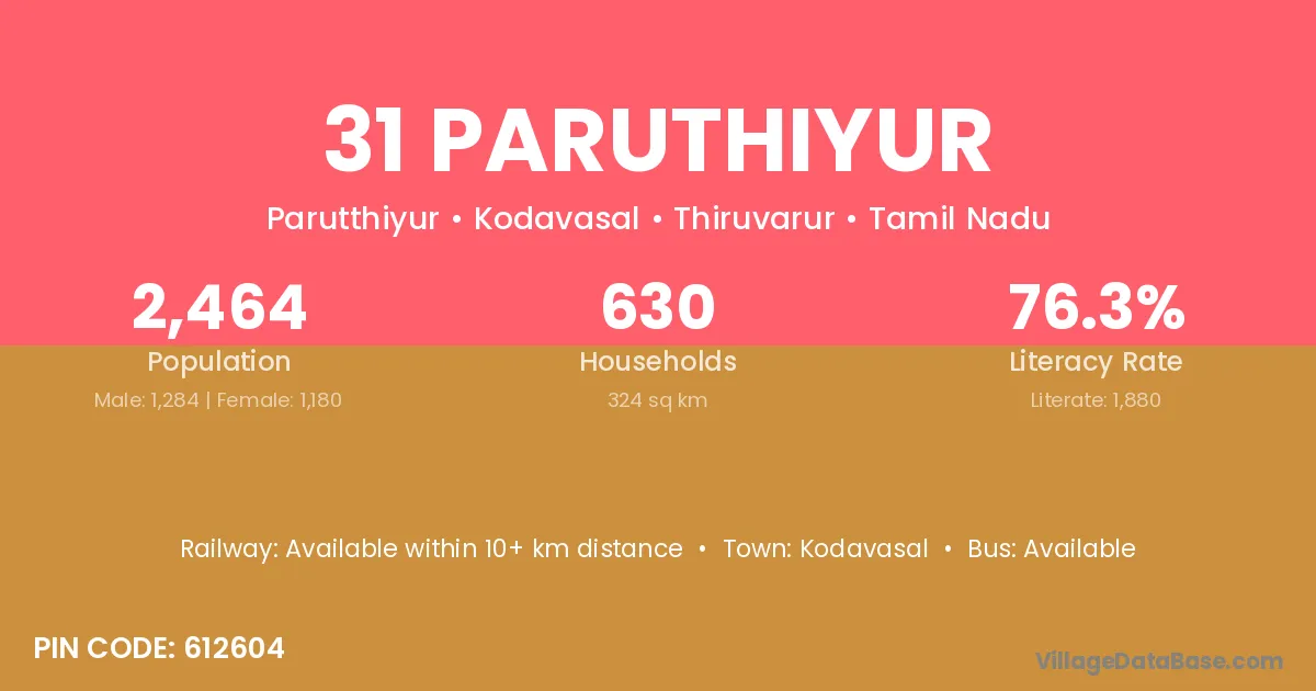 According to Census 2011 information, the village code of 31 Paruthiyur village is 612604.