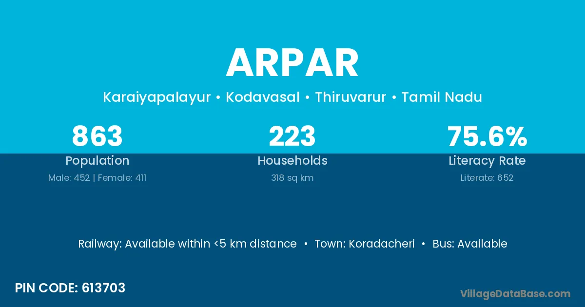 Koradacheri is the nearest town to Arpar village for major economic activities