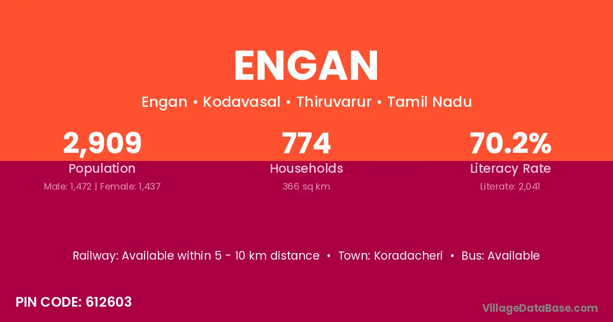 Koradacheri is the nearest town to Engan village for major economic activities