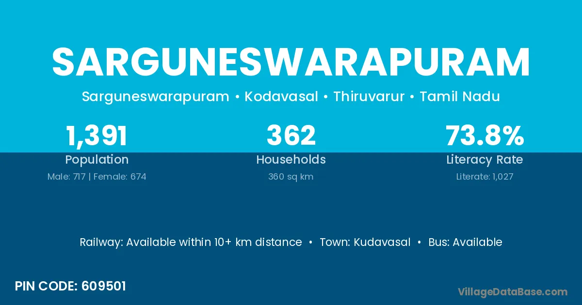 Kudavasal is the nearest town to Sarguneswarapuram village for major economic activities