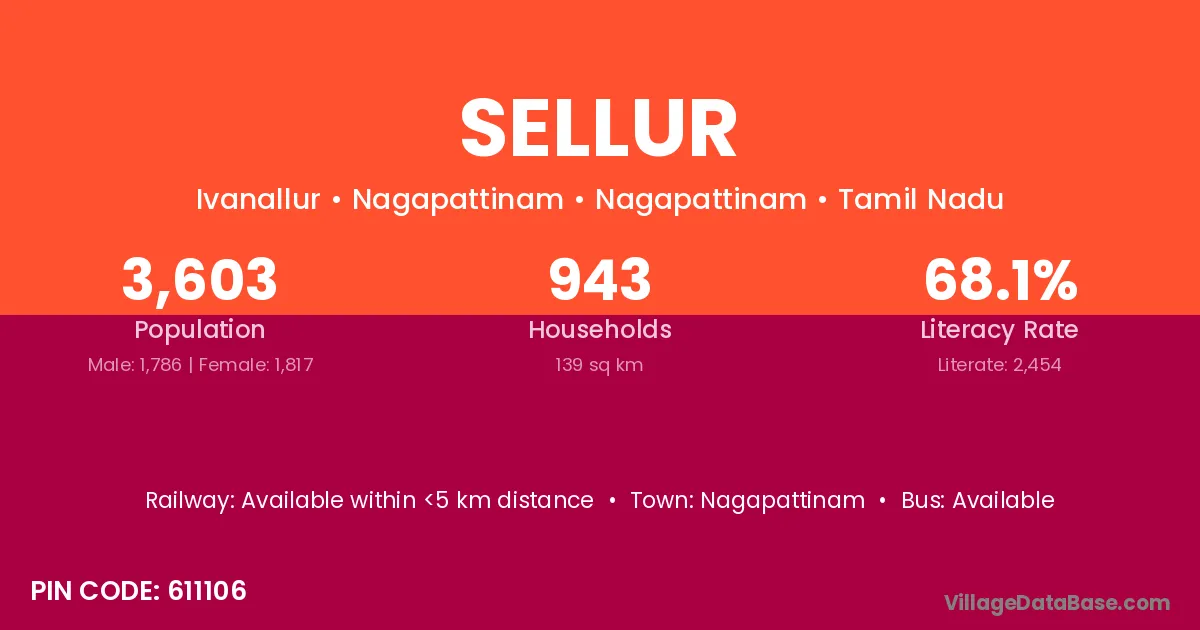 The literacy rate of Sellur village is 77.07%. Male literacy stands at 82.03% and female literacy at 72.30%.