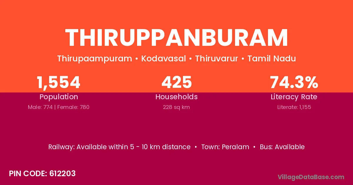 Thiruppanburam village has a total population of 1,554 people, of which 774 are males and 780 are females.