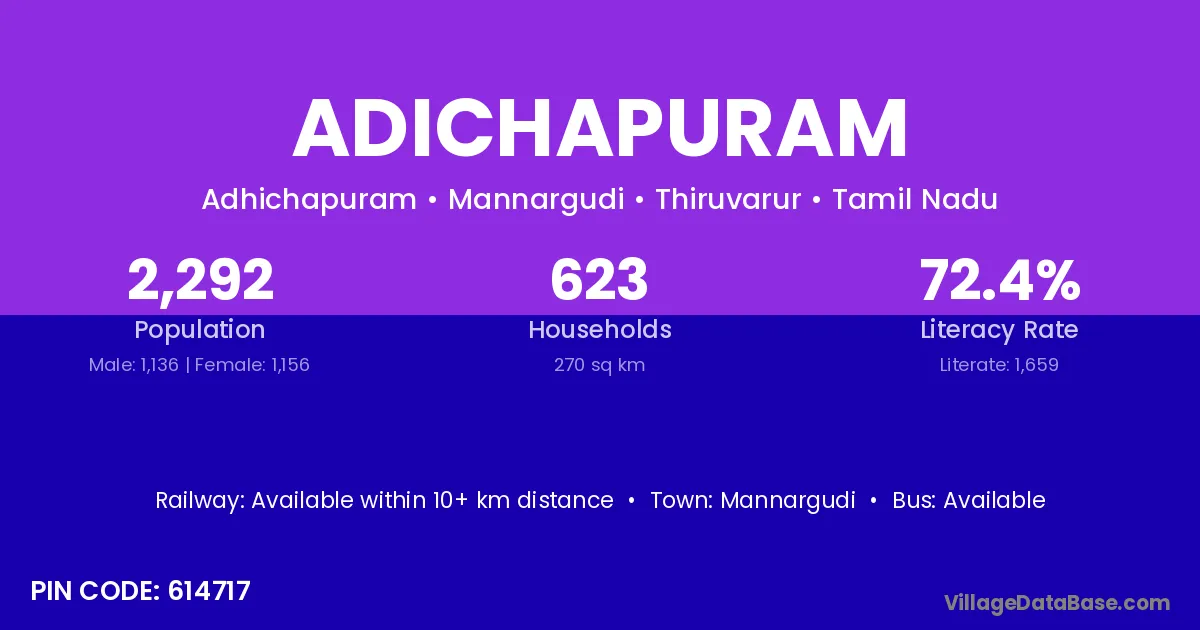 There are approximately 623 households in Adichapuram village.