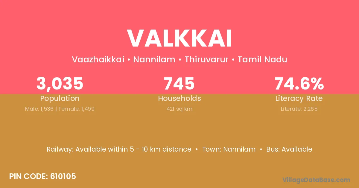 Nannilam is the nearest town to Valkkai village for major economic activities