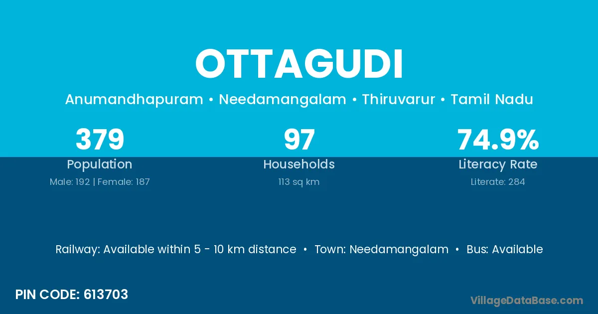 Needamangalam is the nearest town to Ottagudi village for major economic activities
