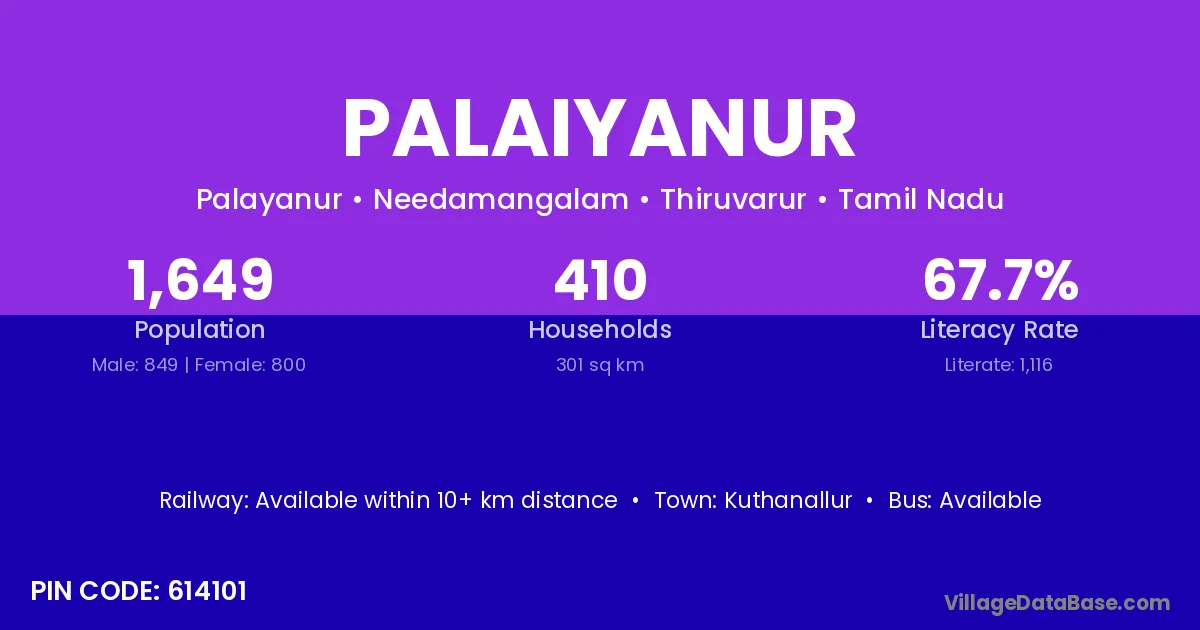 Kuthanallur is the nearest town to Palaiyanur village for major economic activities