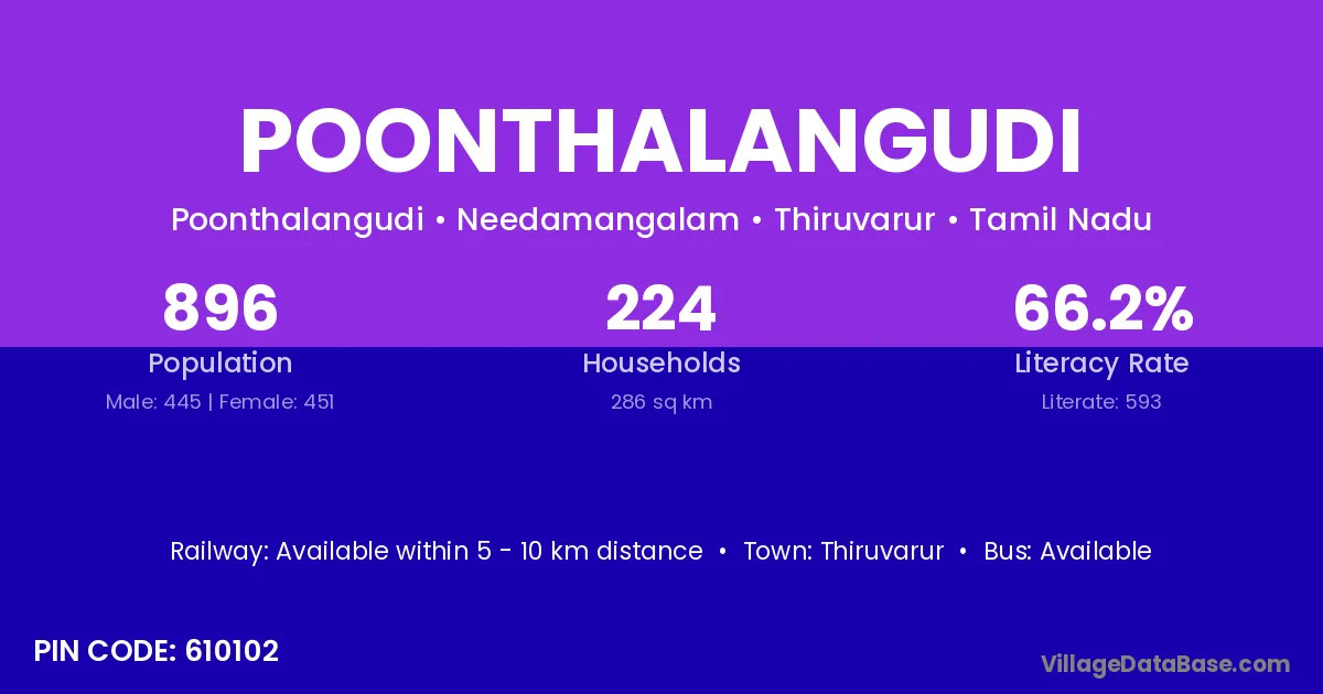 Poonthalangudi village has a total population of 896 people, of which 445 are males and 451 are females.