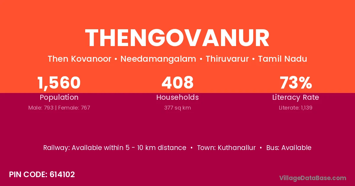 Thengovanur village has a total population of 1,560 people, of which 793 are males and 767 are females.