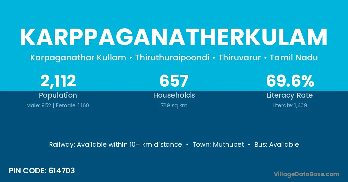 Muthupet is the nearest town to Karppaganatherkulam village for major economic activities