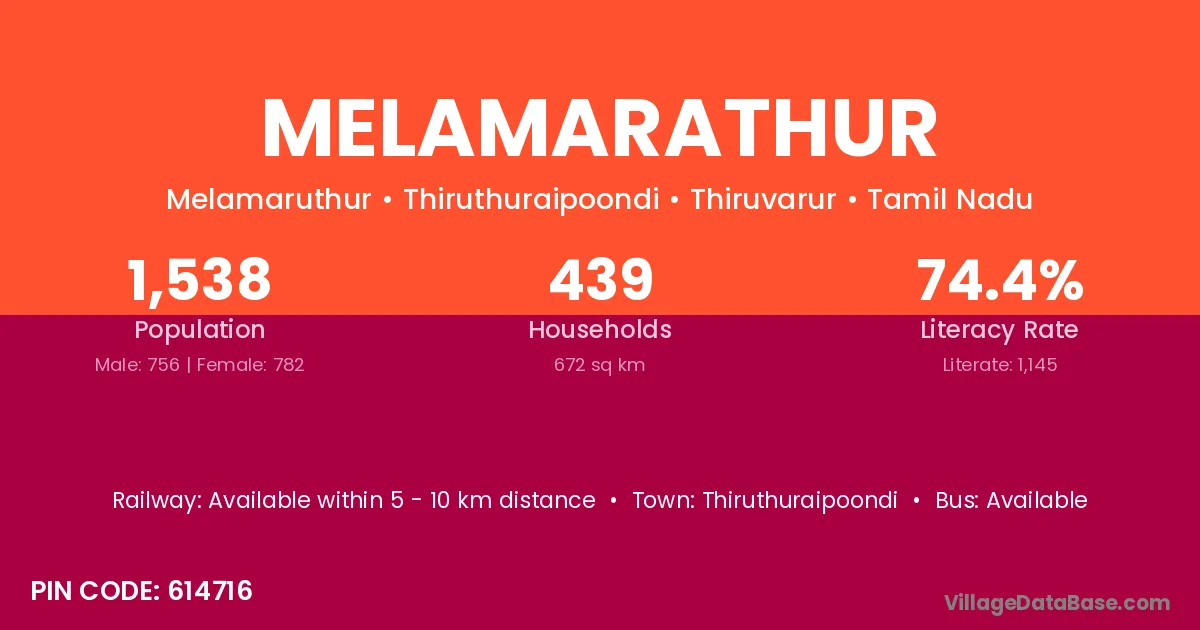 Thiruthuraipoondi is the nearest town to Melamarathur village for major economic activities