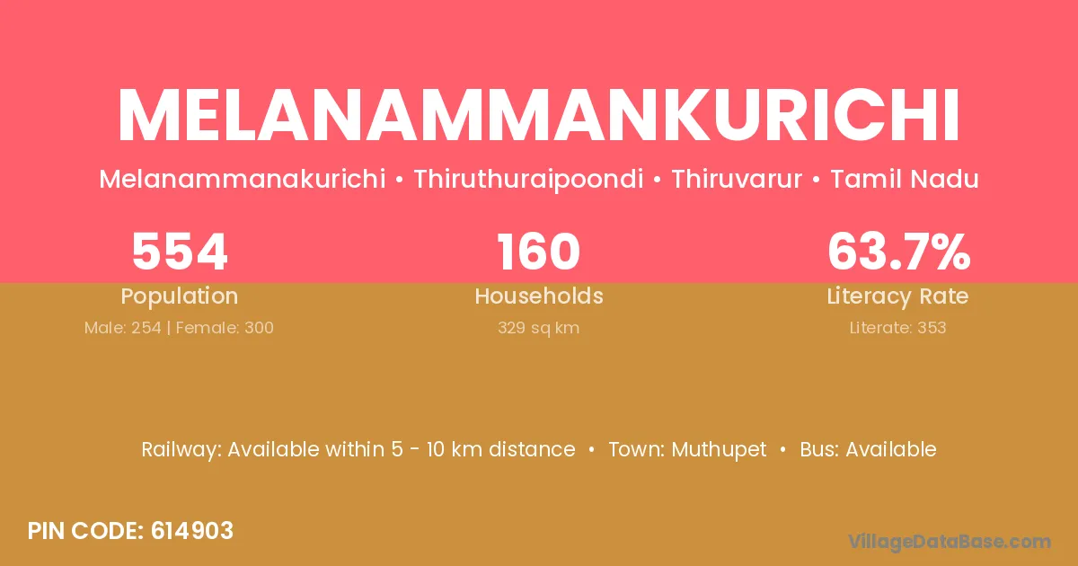 Melanammankurichi village has a total population of 554 people, of which 254 are males and 300 are females.