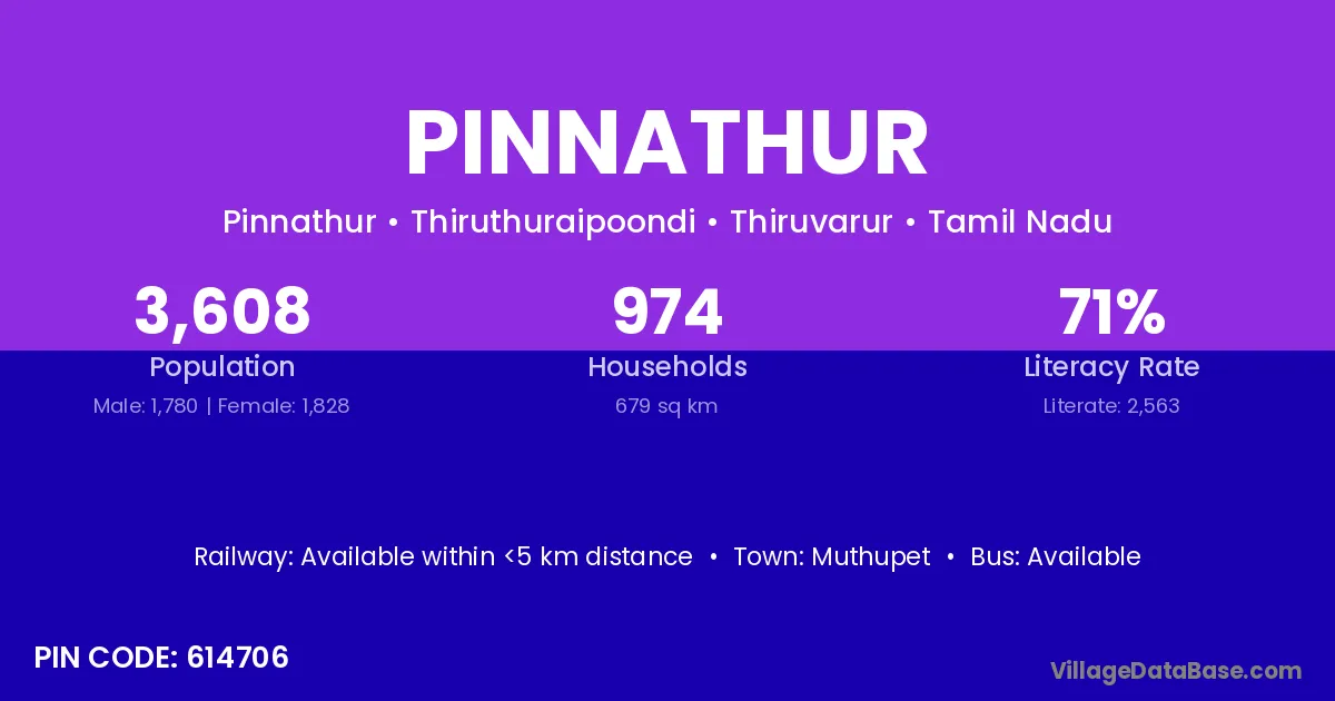 Muthupet is the nearest town to Pinnathur village for major economic activities