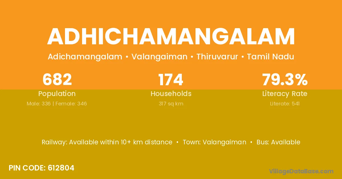 According to Census 2011 information, the village code of Adhichamangalam village is 612804.