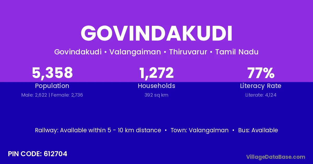 According to Census 2011 information, the village code of Govindakudi village is 612704.