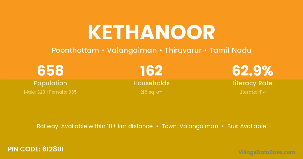 According to Census 2011 information, the village code of Kethanoor village is 612801.