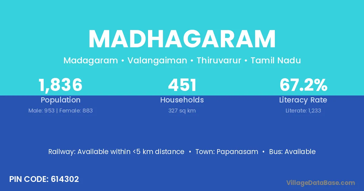 Papanasam is the nearest town to Madhagaram village for major economic activities