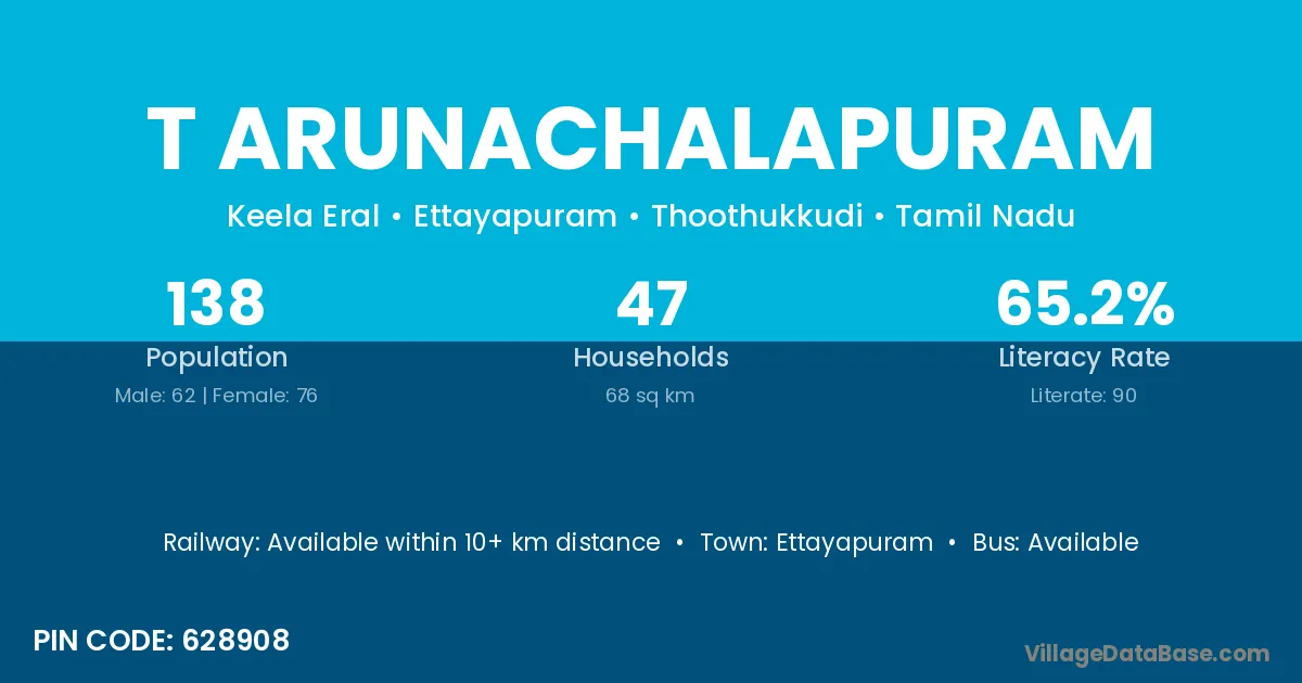 Ettayapuram is the nearest town to T Arunachalapuram village for major economic activities