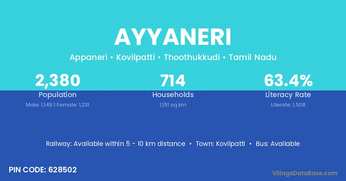 Kovilpatti is the nearest town to Ayyaneri village for major economic activities