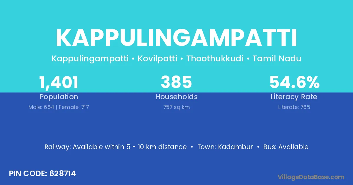 According to Census 2011 information, the village code of Kappulingampatti village is 628714.