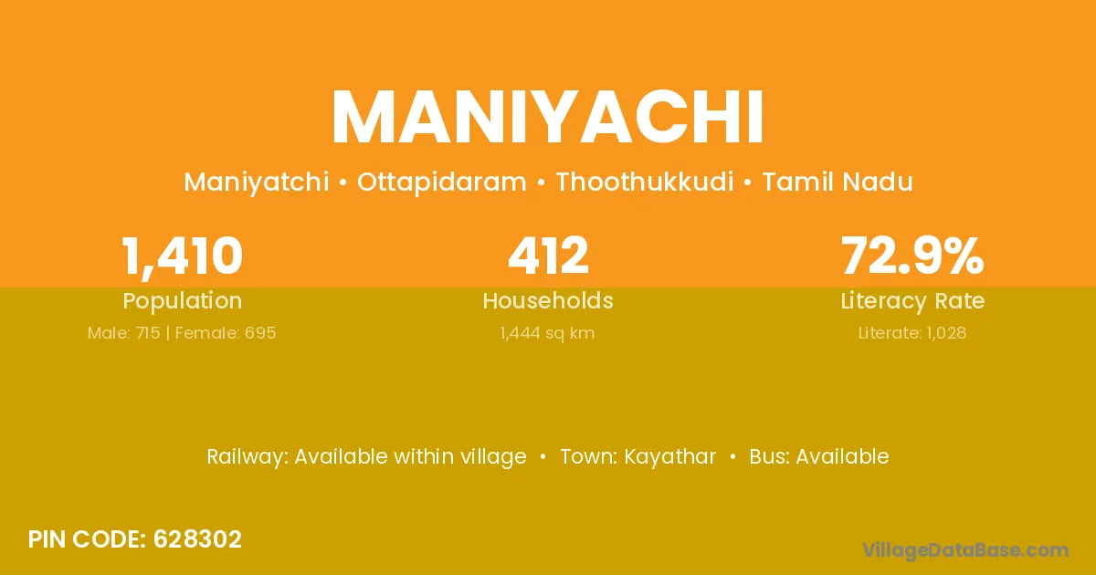 Kayathar is the nearest town to Maniyachi village for major economic activities