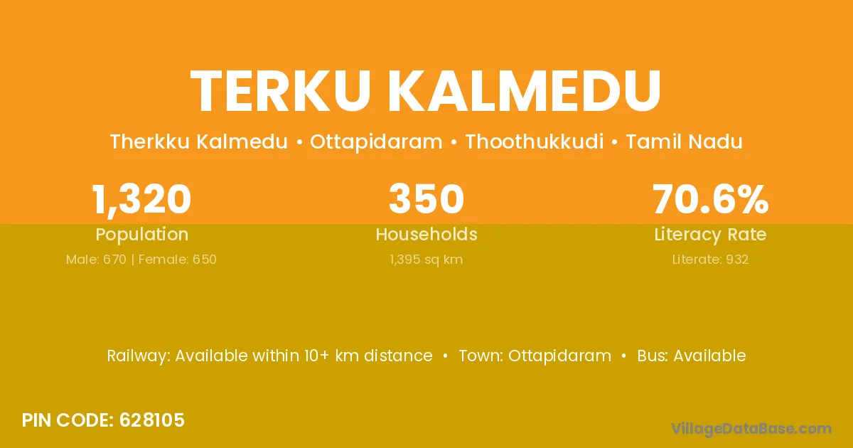 Ottapidaram is the nearest town to Terku Kalmedu village for major economic activities