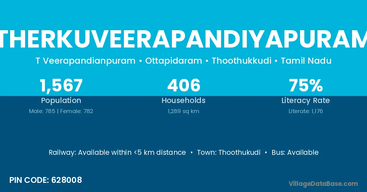 Therkuveerapandiyapuram village has a total population of 1,567 people, of which 785 are males and 782 are females.