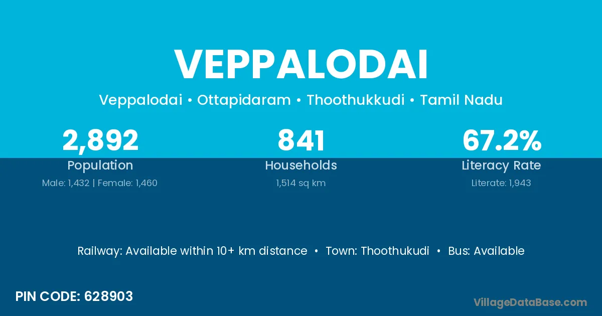 Veppalodai village has a total population of 2,892 people, of which 1,432 are males and 1,460 are females.
